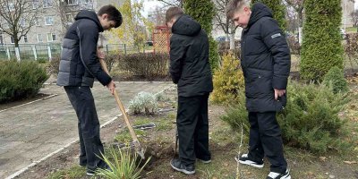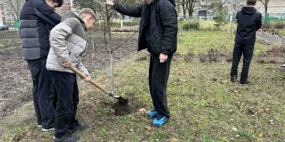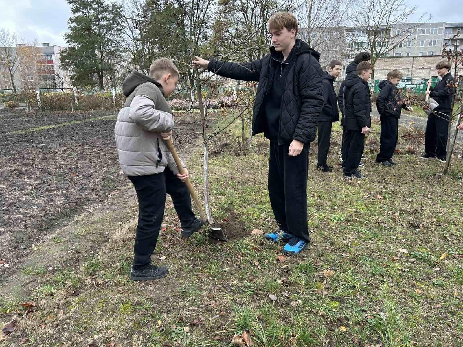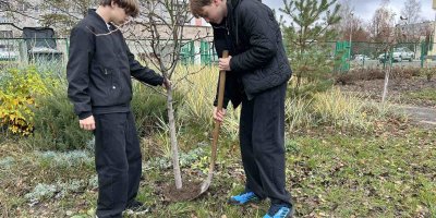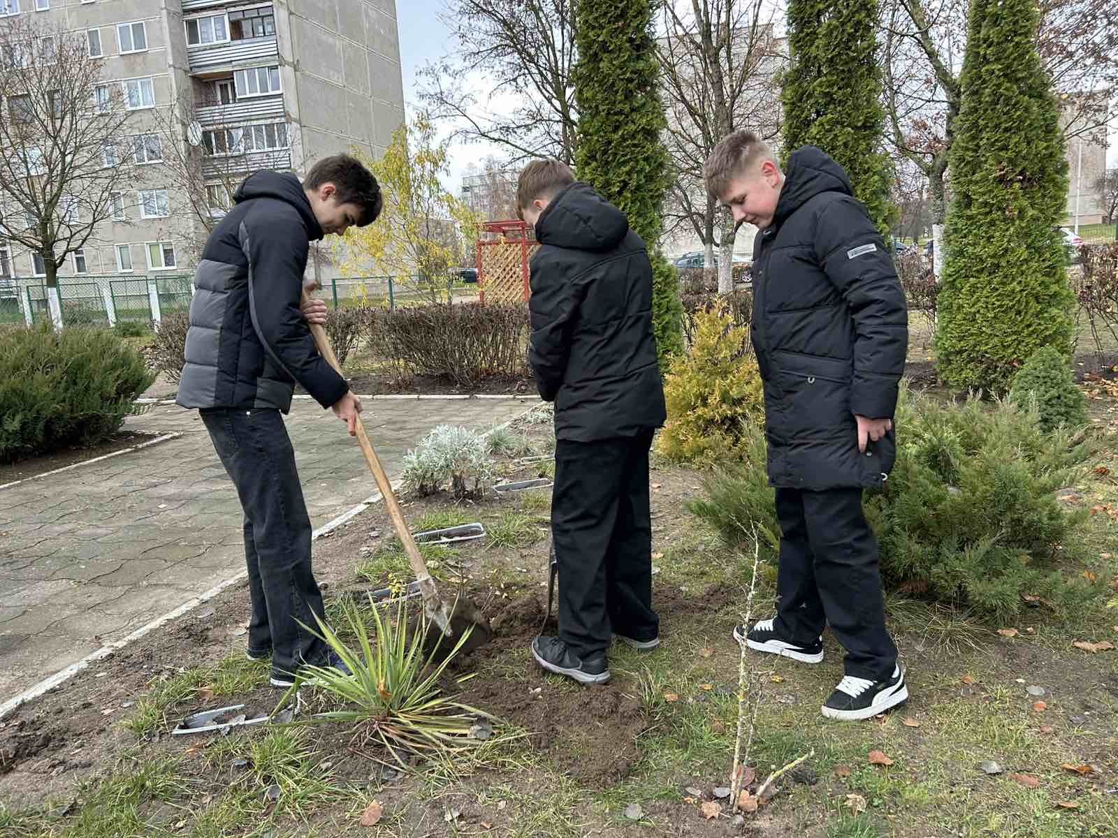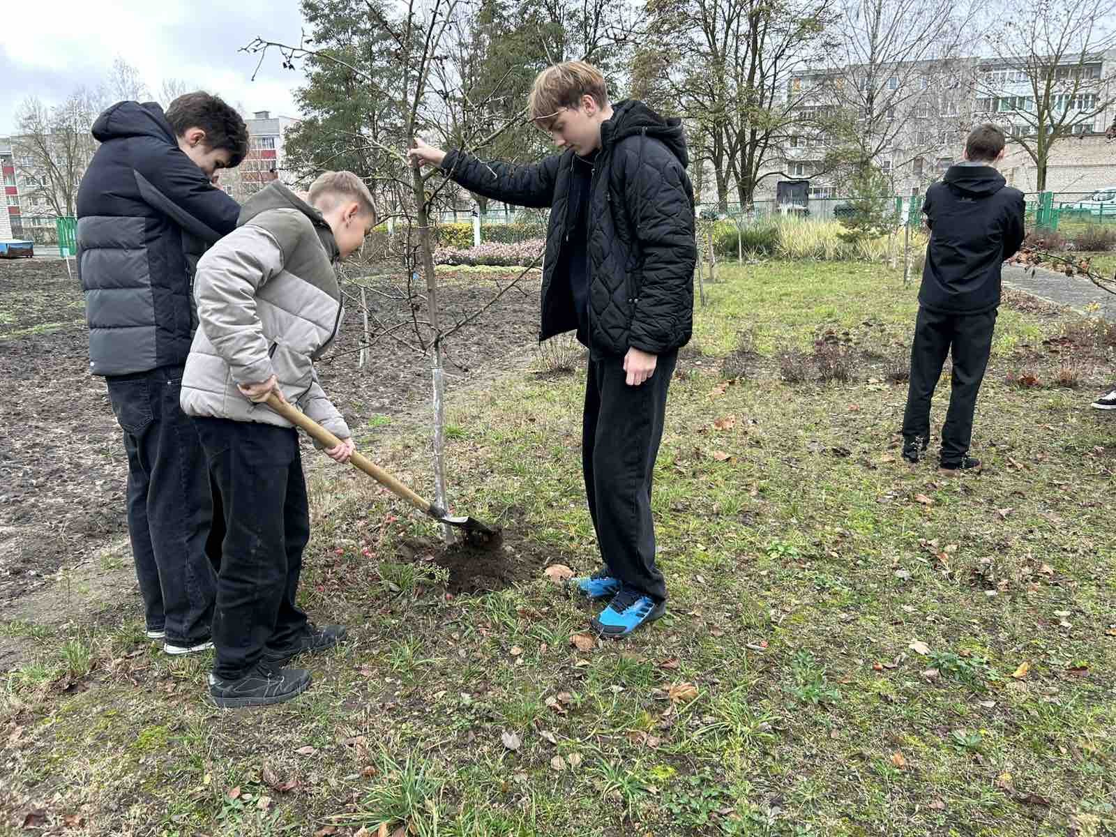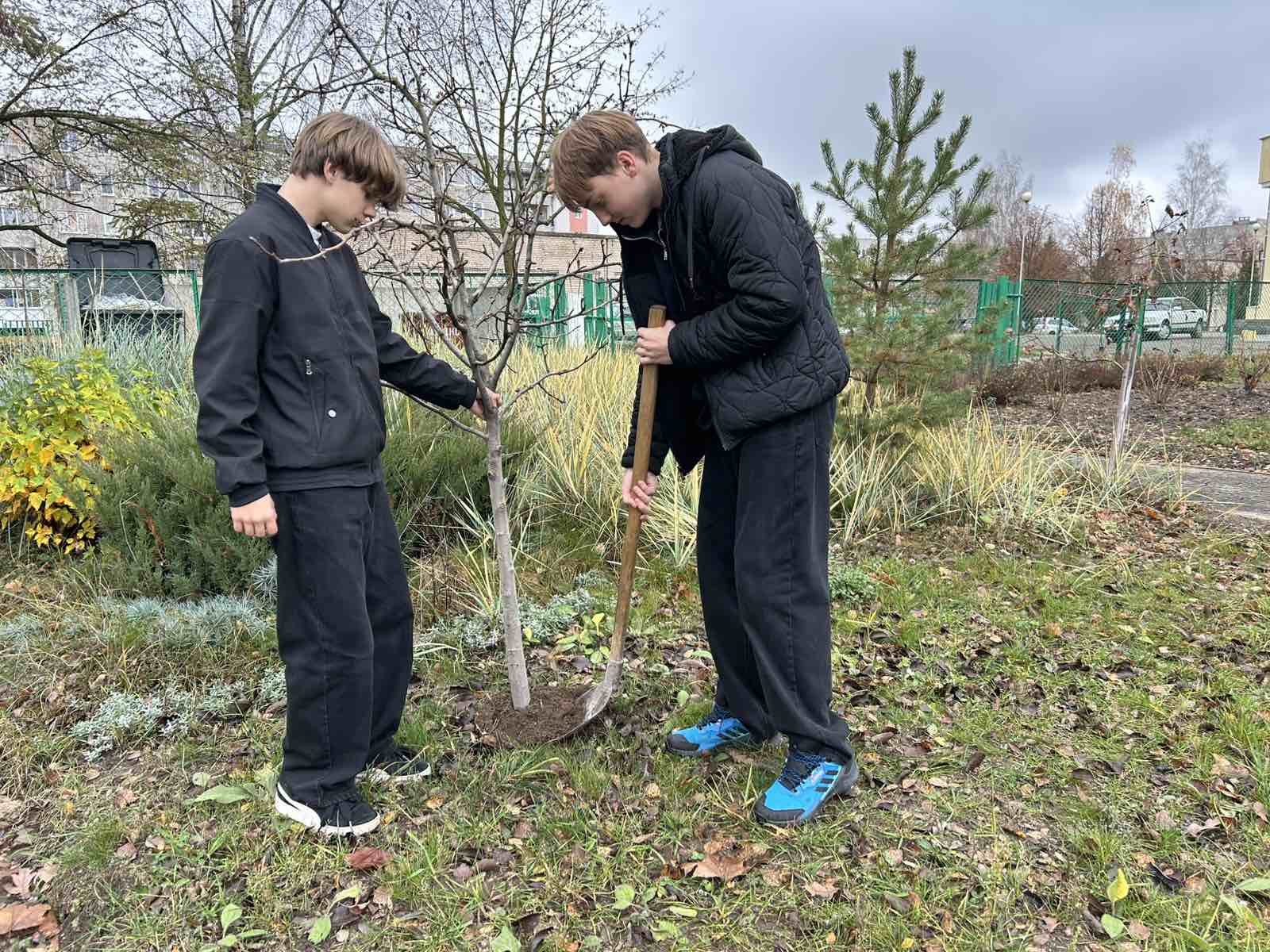Учащиеся 8-ых классов посадили кустарники и деревья.