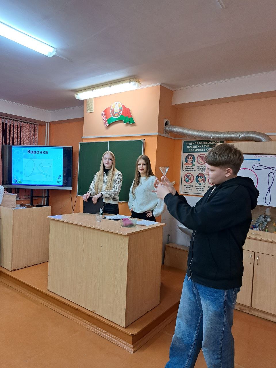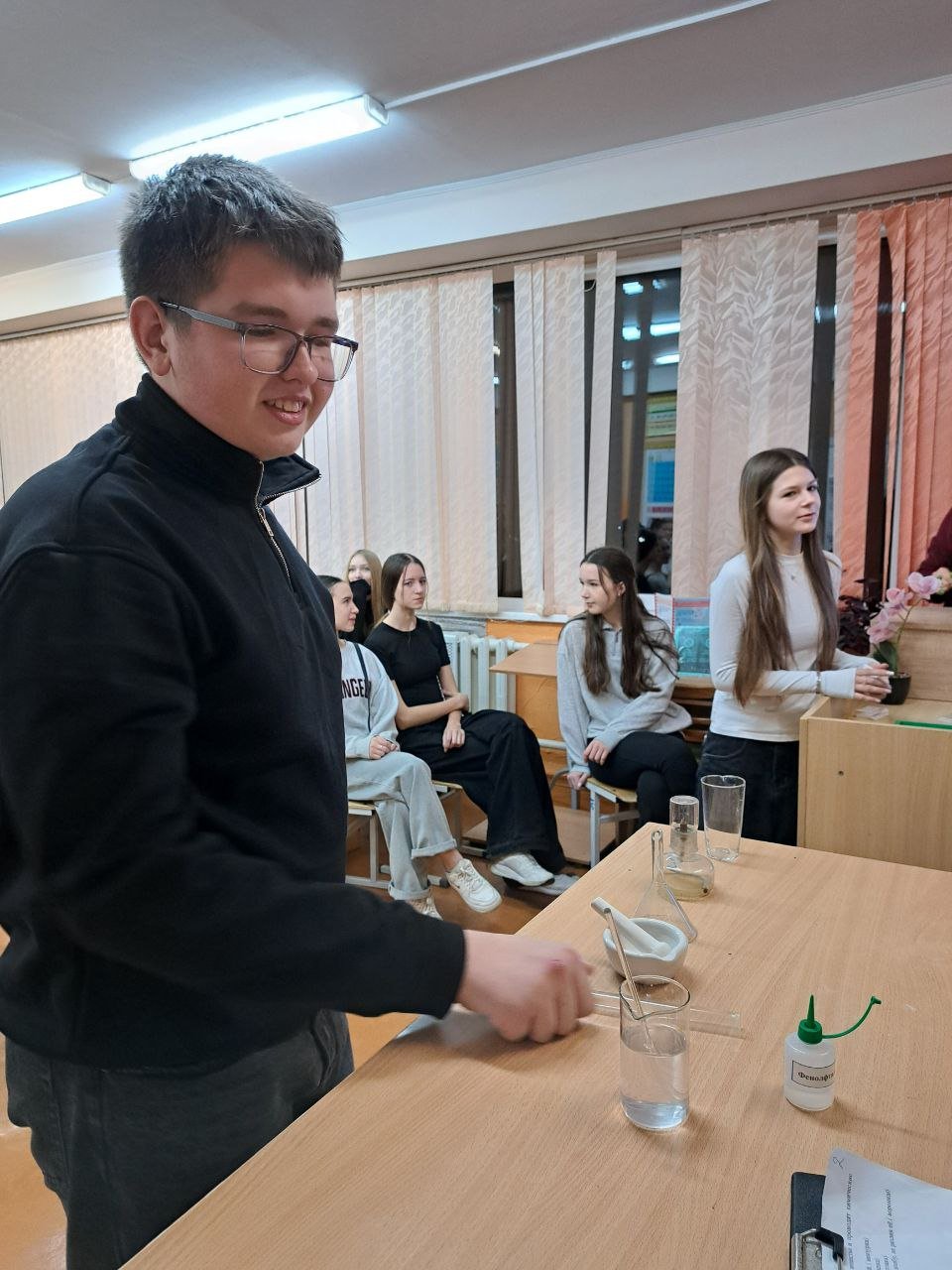 Вечером прошёл турнир «Химический поединок», в котором участвовали учащиеся 9–11-х классов. Старшеклассники показали высокий уровень подготовки, умение применять теоретические знания на практике и искренний интерес к химии.