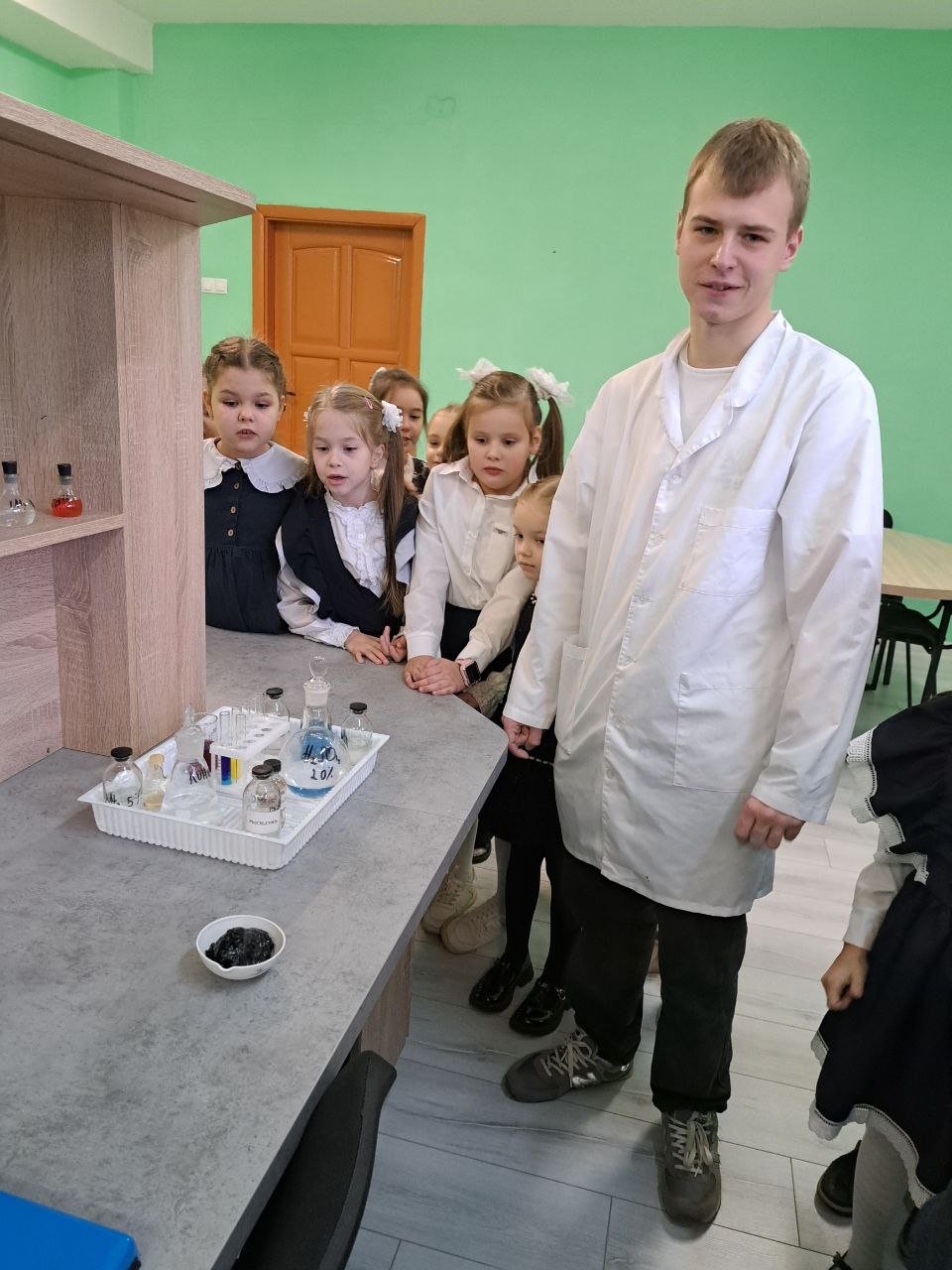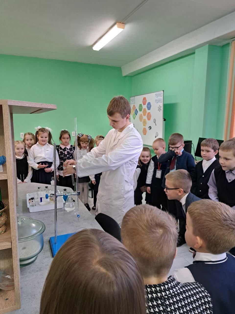 А для учащихся начальной школы была организована экскурсия в инженерно-технический центр химического направления «Лаборатория юных исследователей». Первоклассники познакомились с увлекательными химическими явлениями, увидели демонстрационные эксперименты и узнали о том, как устроена работа настоящей лаборатории. Экскурсия вызвала живой интерес у детей и подарила им много положительных впечатлений.