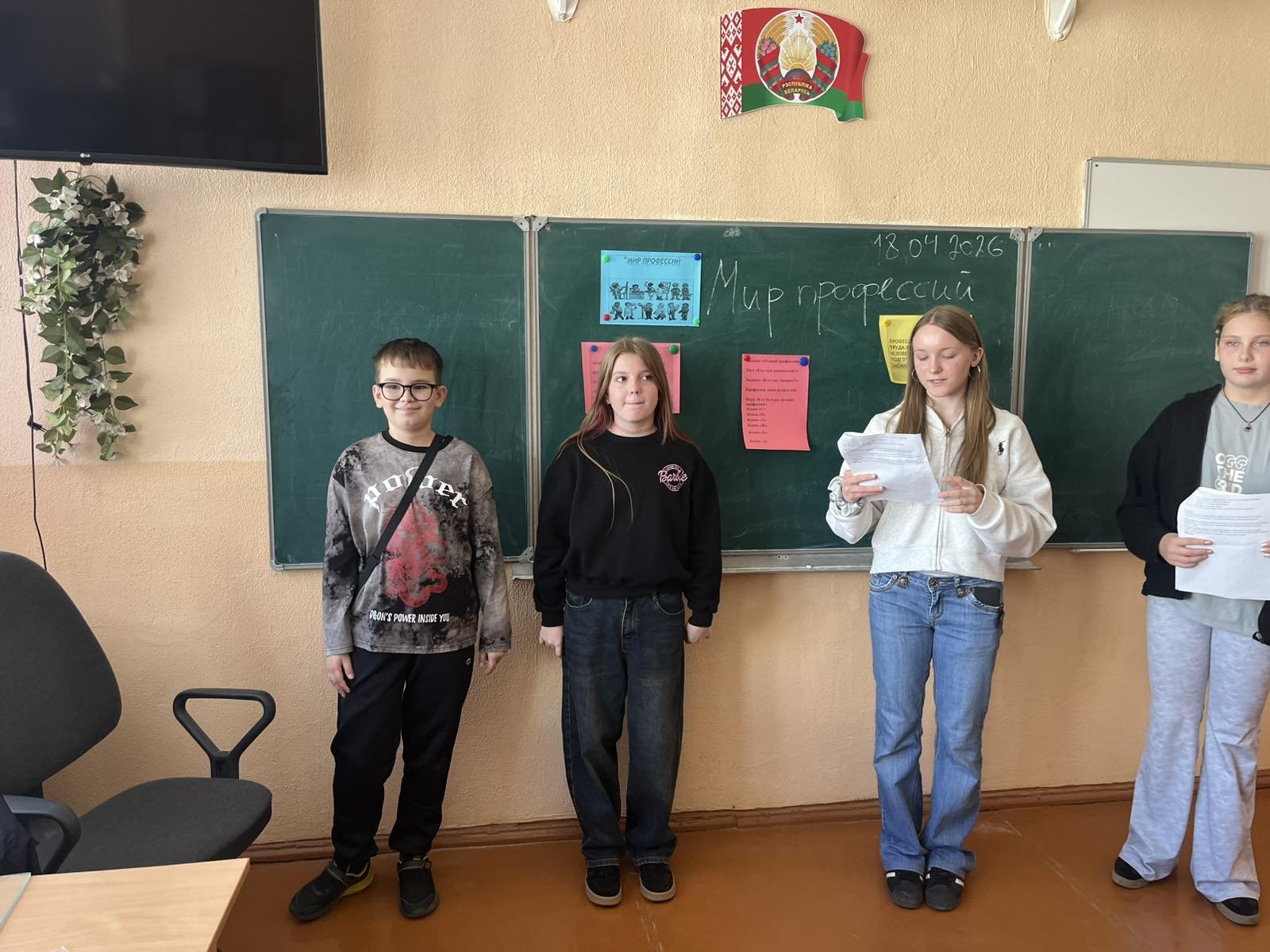 Главная Новости Игра-викторина "Мир профессий" Игра-викторина "Мир профессий" 20 апреля 2026 В субботу 18.04 в 11.00 для учащихся 6 классов была проведена игра-викторина "Мир профессий". Ребята были увлечены игрой и активно в ней участвовали.