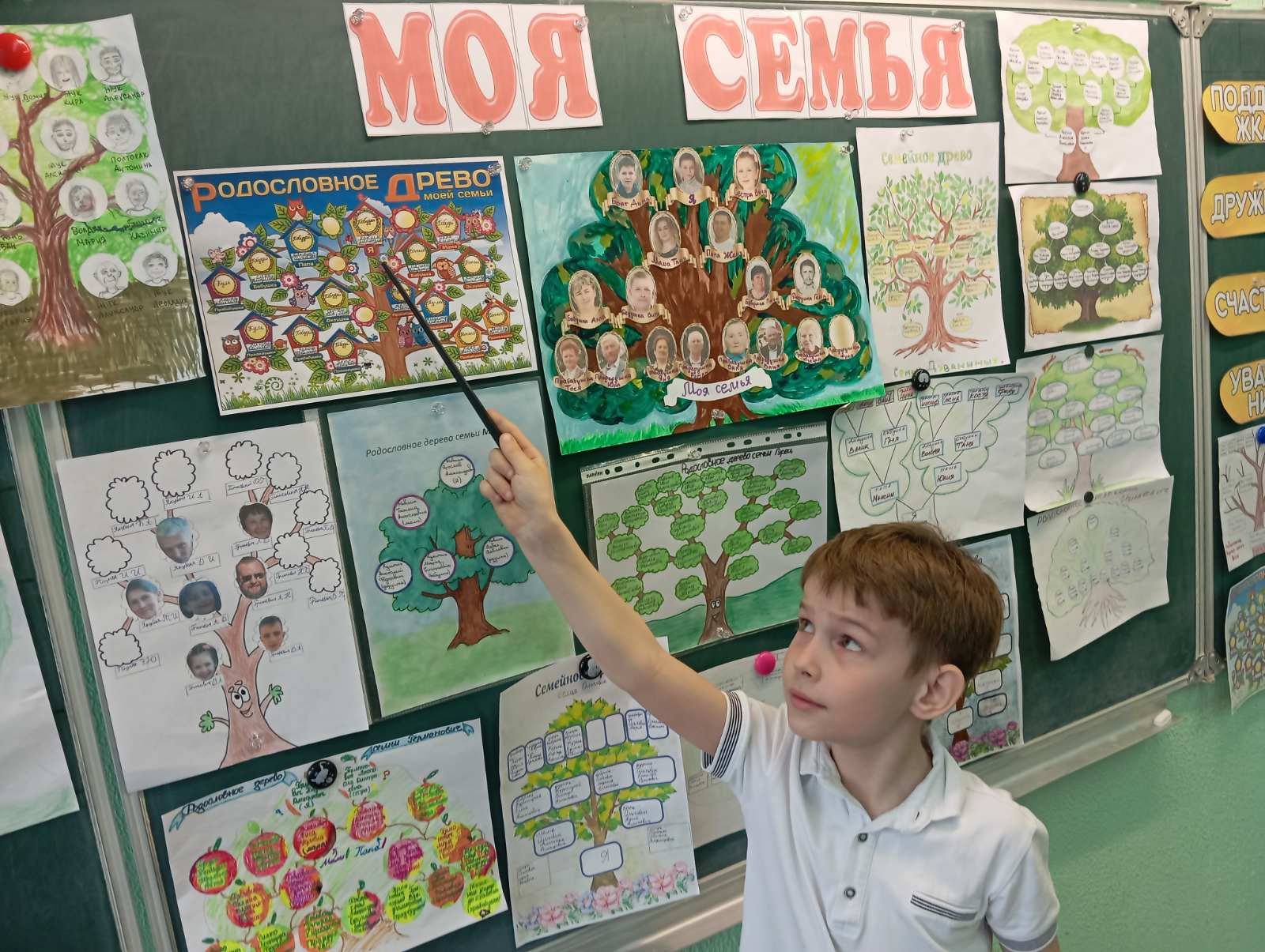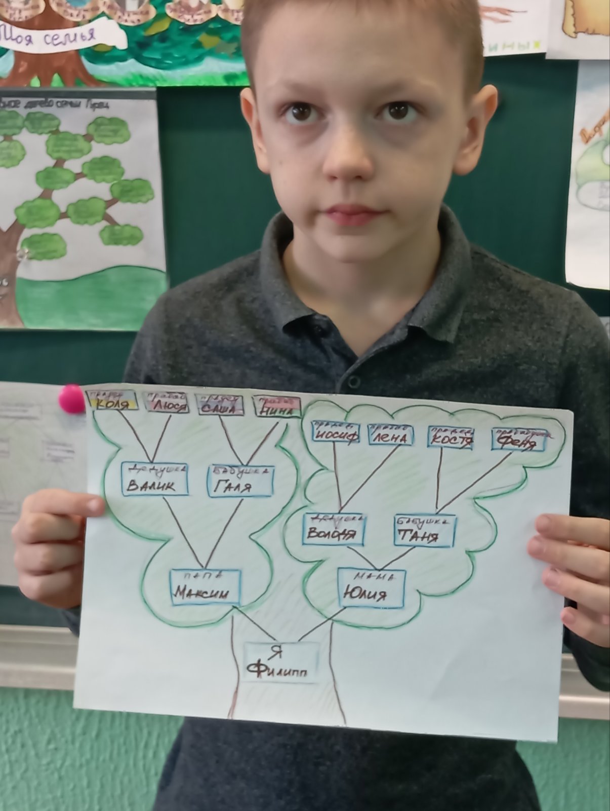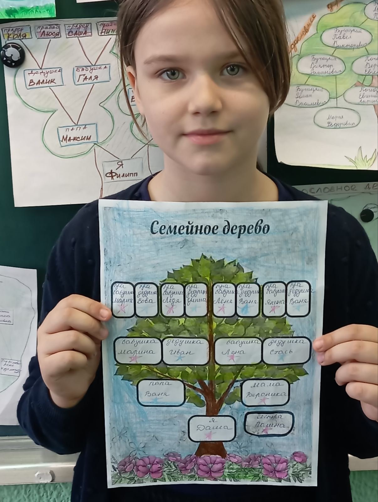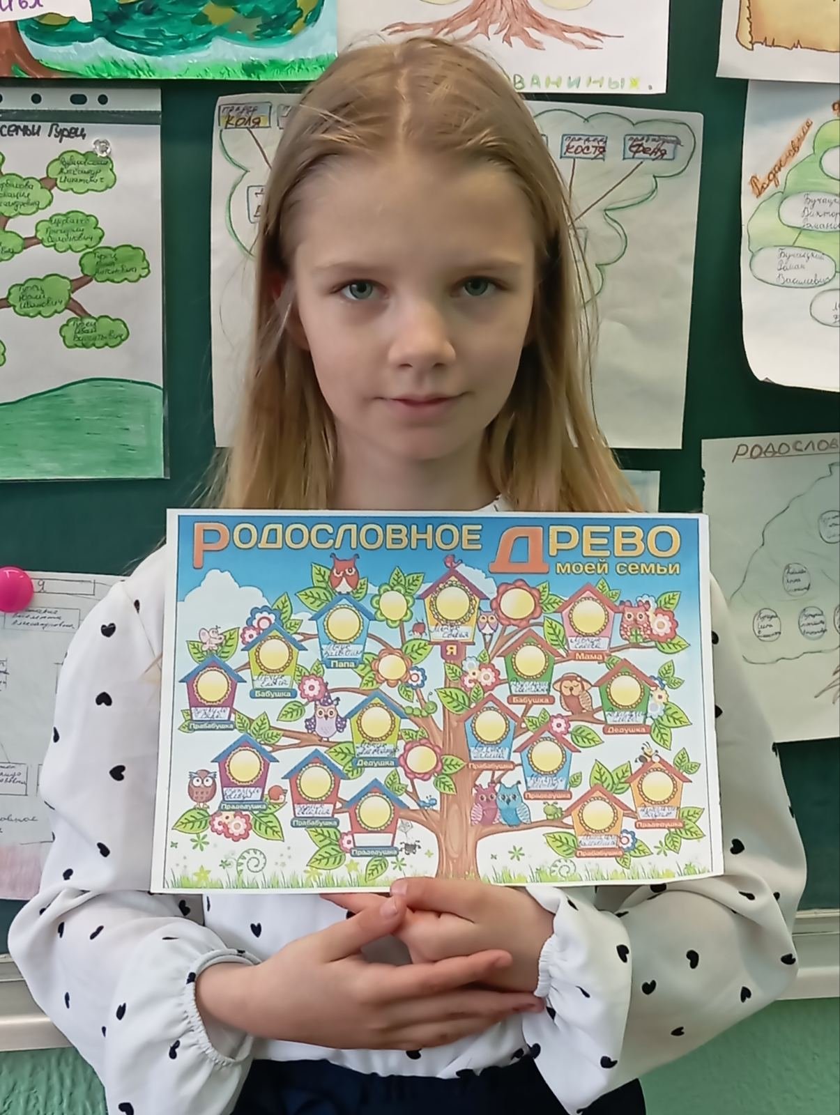 Для любого человека очень важно знать историю своей семьи, чувствовать себя частью большого рода, гордиться своими предками. До нашего времени существует поверье, что ангелы-хранители - это наши предки, известные нам. Отсюда, чем больше вы знаете о совей родословной, тем больше у вас ангелов-хранителей. 20 апреля учащиеся 3 классов приняли участие в КТД "Рисуем семейное дерево". Участники задолго до мероприятия стали собирать сведения о своей родословной. Каждый участник создал своё родословное дерево. В конце мероприятия была организована выставка творческих работ. У своего дерева с родословной в руках ребята на минуту почувствовали себя проводником из прошлого в будущее и загадали желание. Пусть оно непременно сбудется!