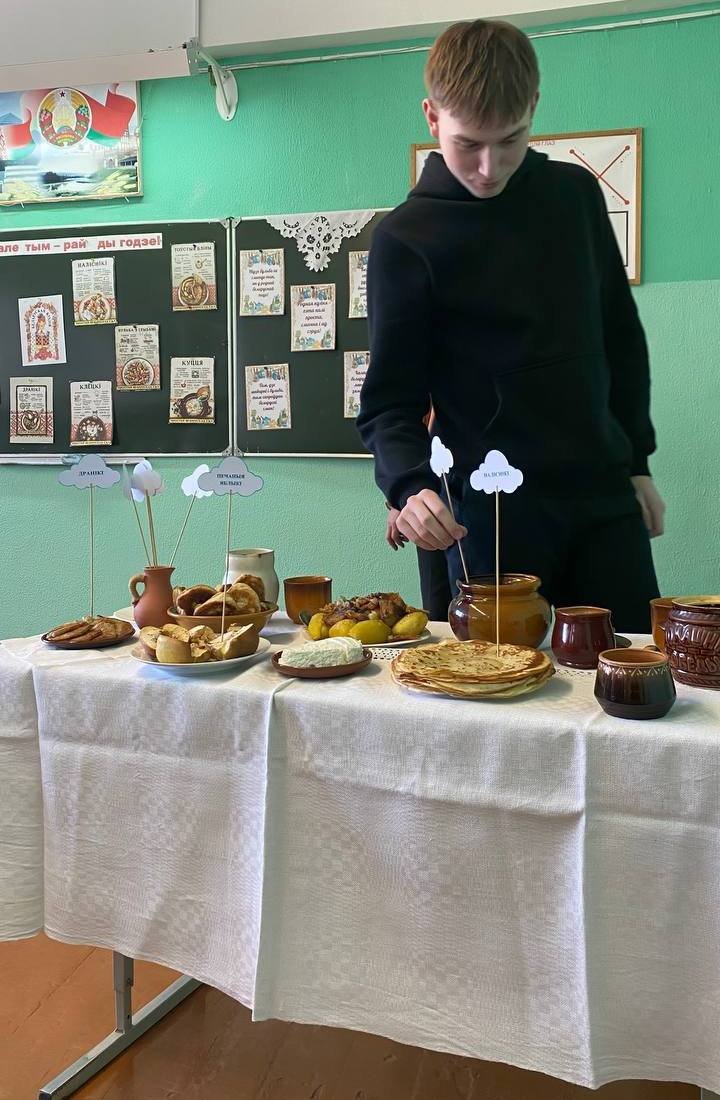 Вучні 9-ых класаў сталі актыўнымі ўдзельнікамі прэзентацыі “А на стале тым – рай ды годзе”, якая была прысвечана традыцыйнай беларускай кухні і яе адлюстраванню ў творах мастацкай літаратуры. Госці мерапрыемства не толькі даведаліся рэцэпт прыгатавання многіх страў, але і змаглі паспытаць на смак печаныя яблыкі, клёцкі, дранікі, мёд.