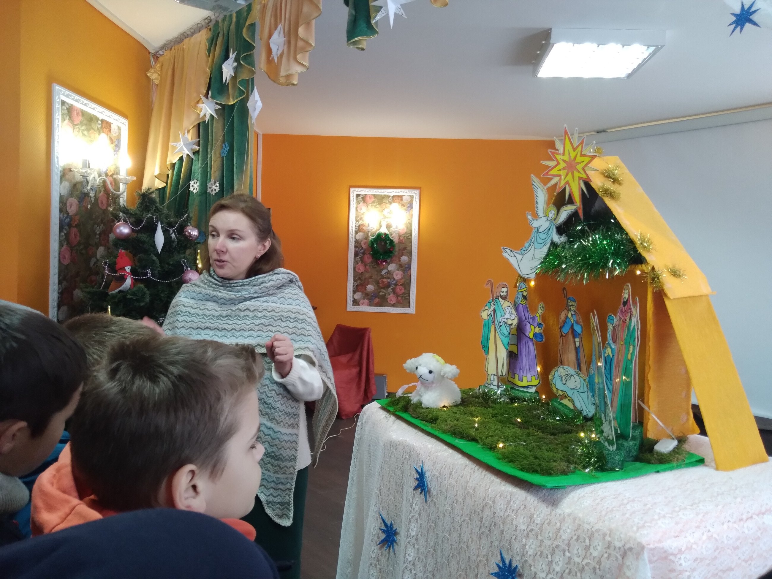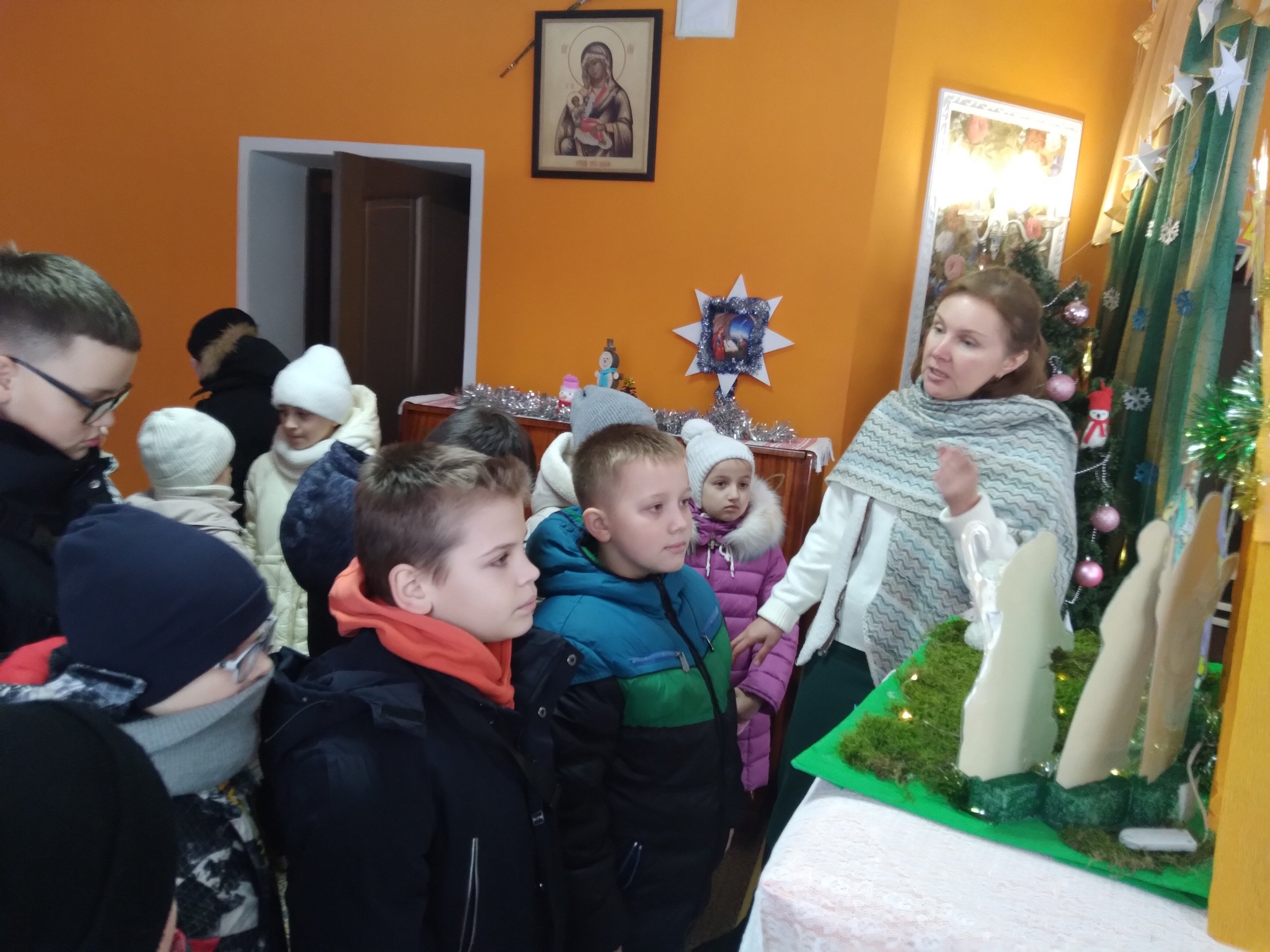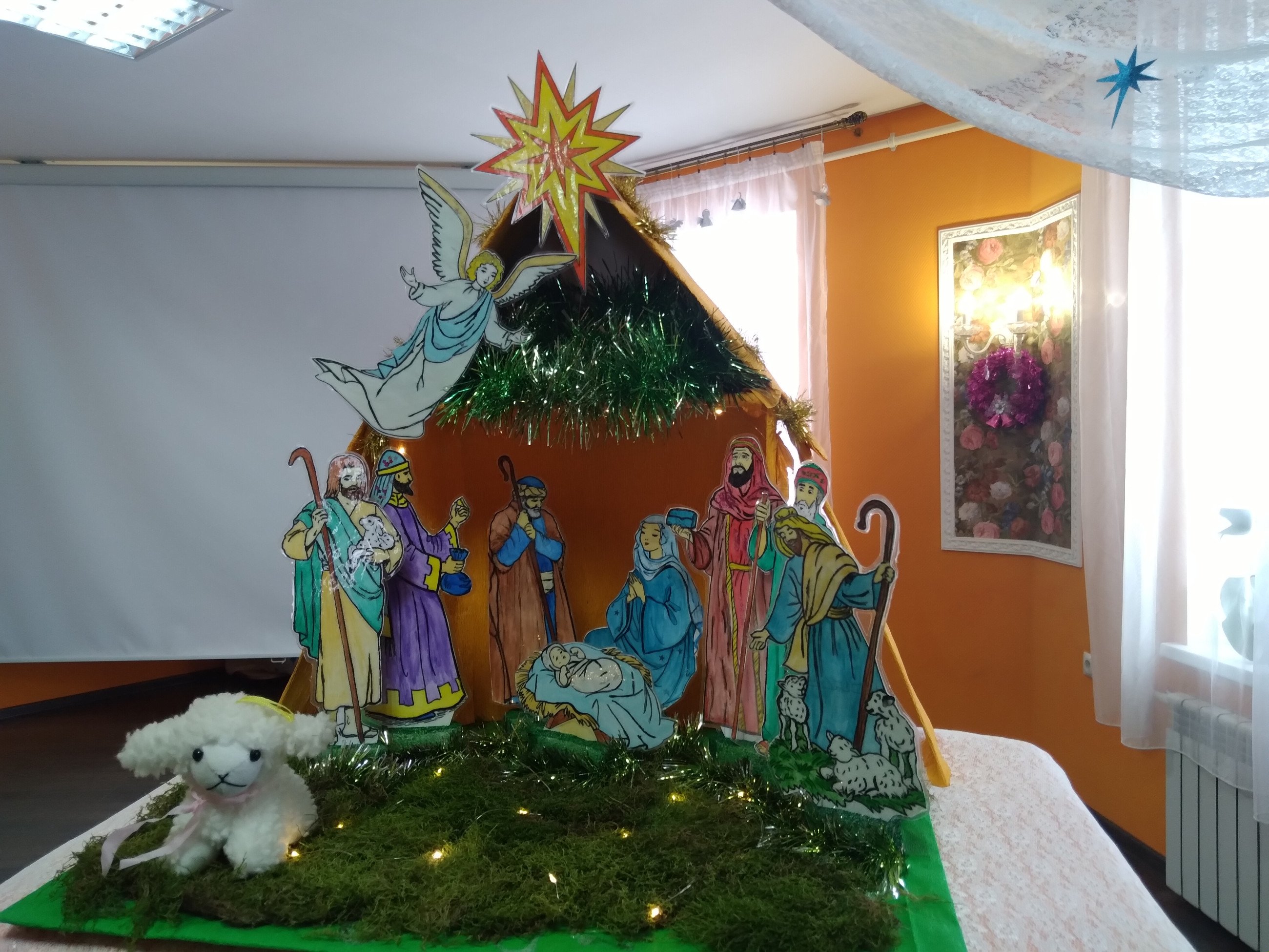 Праздничная программа «Рождество приходит к каждому» (в рамках реализации проекта духовно- нравственного воспитания «Уважая мудрость», день взаимодействия с семьёй) .Учащиеся 3 и 4 классов посетили воскресную школу храма Благовещения Пресвятой Богородицы. Во время просмотра батлейки ребята узнали историю празднования православного праздника Рождество Христово, вспомнили символы и традиции празднования Рождества. Это общение вызвало у детей сострадание, желание подарить радость другим людям, уважение к традициям православного праздника.