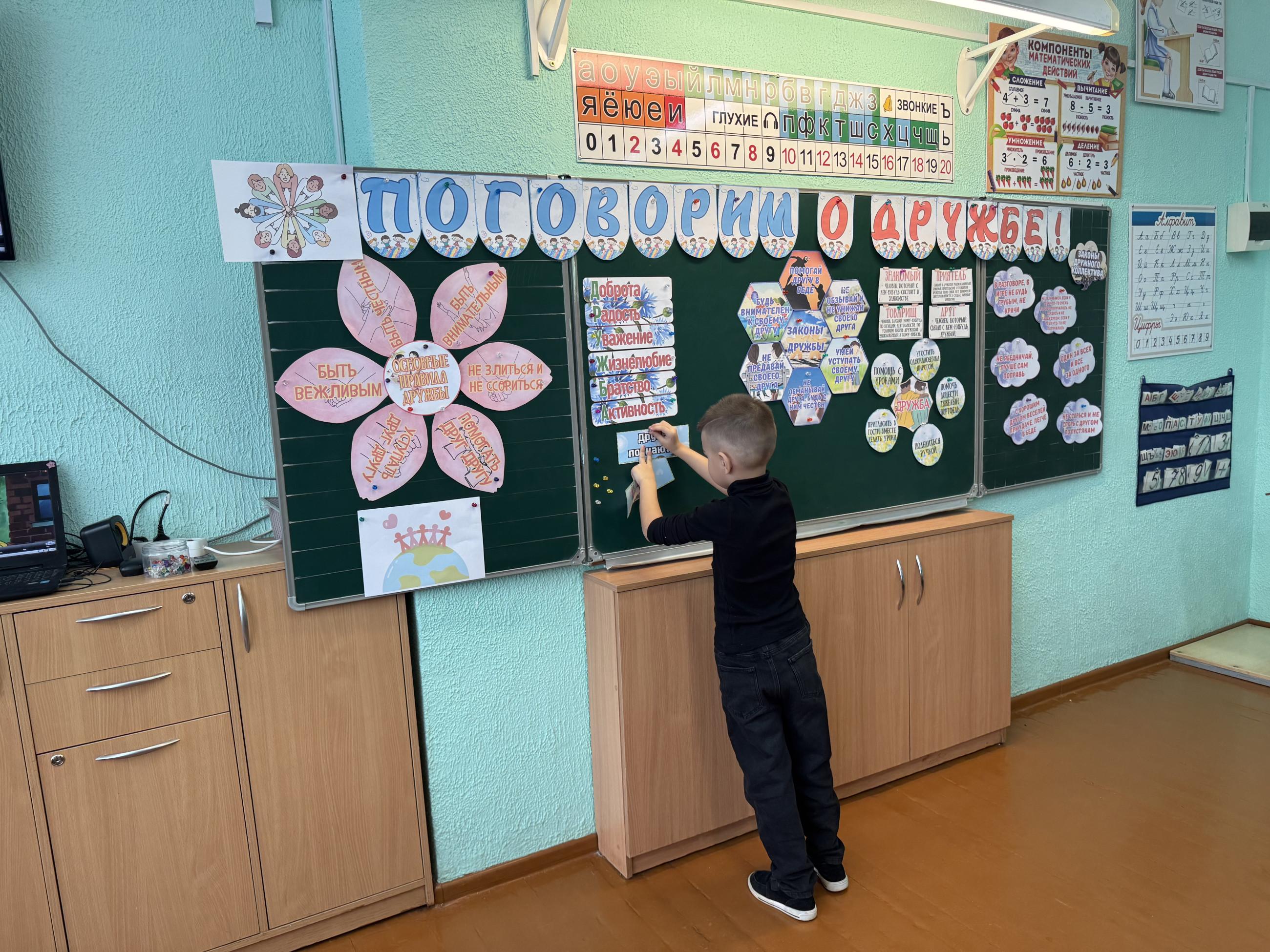 7 февраля для учащихся 1-ых классов проводился устный журнал «Дружба — чудесное слово», посвящённый самым тёплым и важным отношениям в жизни каждого первоклассника. Ребята читали стихи о дружбе, пели добрые песни, смотрели инсценировки по мотивам знакомых сказок и вместе разгадывали загадки о взаимовыручке и доброте. В игровой форме дети обсудили, какими качествами должен обладать настоящий друг, и почему важно уметь прощать, делиться и поддерживать друг друга. Особенно запомнился момент «Дерева дружбы», на котором каждый ученик оставил свой отпечаток ладошки как символ единства класса. Мероприятие прошло в тёплой, доверительной атмосфере и помогло первоклассникам глубже понять ценность дружеских отношений. Ребята унесли с собой не только радостные эмоции, но и важные уроки о том, как сохранять и беречь дружбу.
