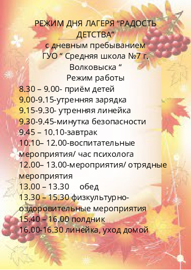 ПЛАН РАБОТЫ ГУО «СРЕДНЯЯ ШКОЛА № 7 Г. ВОЛКОВЫСКА» НА ОСЕННИЕ КАНИКУЛЫ 2025/2026 УЧЕБНЫЙ ГОД
